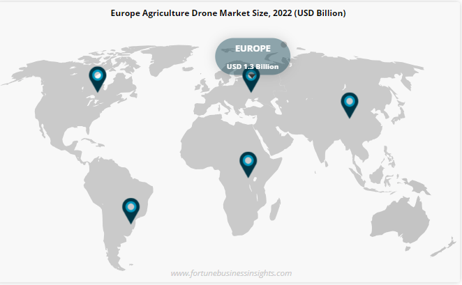 Europe captured a significant global market share in 2022 owing to the surging demand for the drones, rising funding, and strong research and development capabilities of the region. Moreover, the growing number of startups such as Gamaya, Delair, Accelerated Dynamics, and others will further aid regional market expansion.