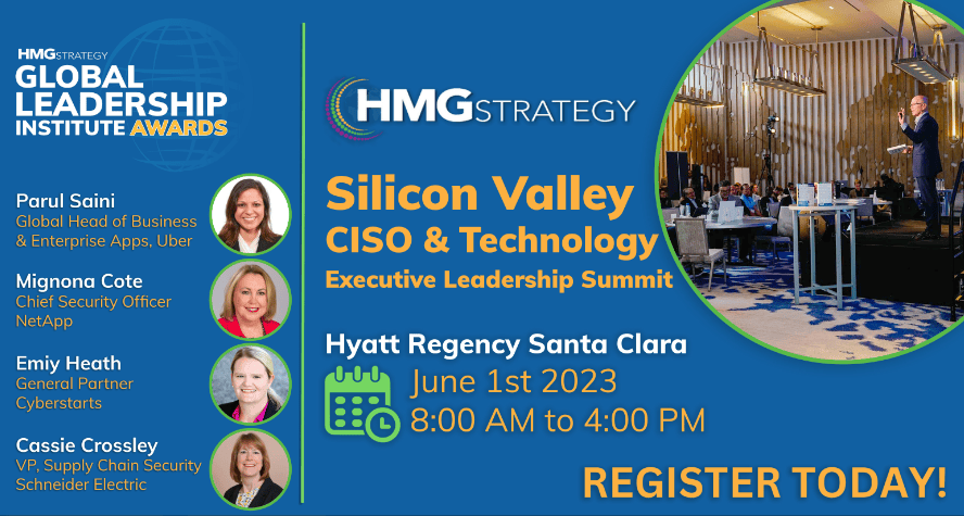 Exemplary leaders will be celebrated at HMG Strategy’s 2023 Silicon Valley CISO & Technology Executive Leadership Summit, taking place at the Hyatt Regency Santa Clara on June 1