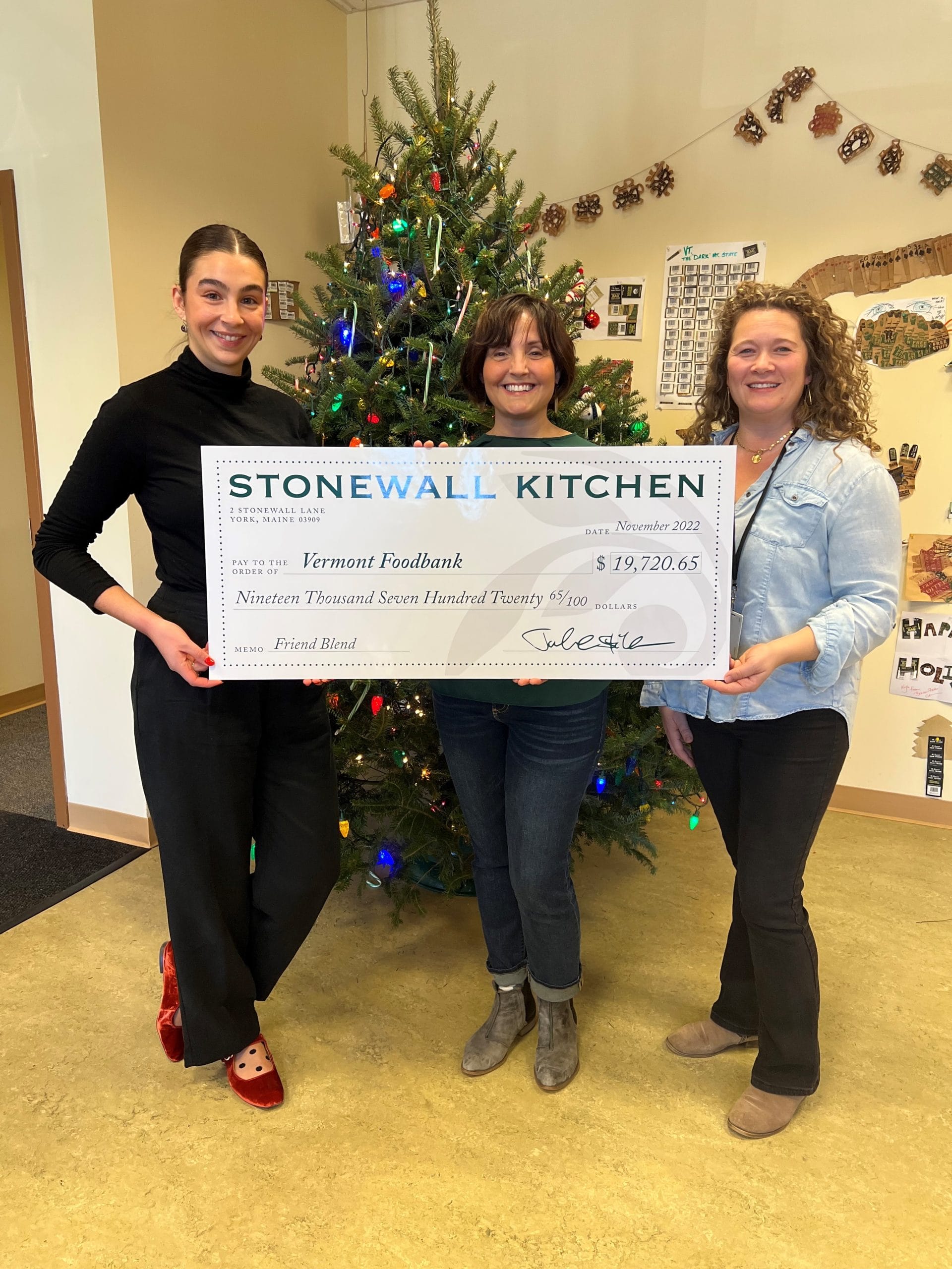 - Stonewall Kitchen and Vermont Coffee Company Representatives present Vermont Food Bank with donation check for over $19,000