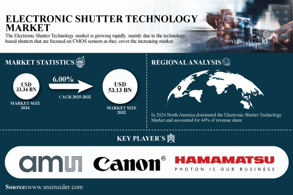 According to the SNS Insider,“The Electronic Shutter Technology Market Size was valued at USD 33.34 Billion in 2024 and is projected to reach USD 53.13 Billion by 2032, growing at a CAGR of 6.00% during 2025-2032.”