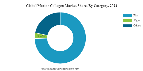 Based on category, the global market is segmented into fish, algae, and others. The fish segment holds the single largest marine collagen market share as this type of collagen is quite rich in vitamins, proteins, minerals, and crucial amino acids.