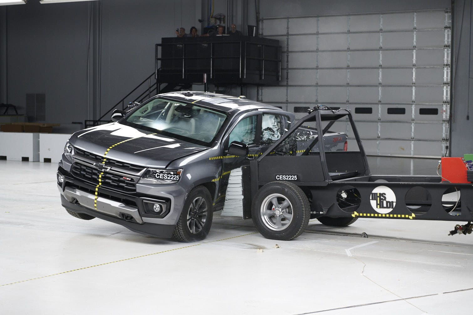 The 2022 Chevrolet Colorado crew cab is one of three models to earn the highest rating of “good” in IIHS’s updated side crash test. Six popular small pickup models were included in the latest test group.