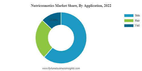By application, the market for nutricosmetics is categorized into nails, skin, and hair. The skin segment holds a key share in the market due to the soaring popularity of numerous products such as whitening, smoothening, and anti-aging.