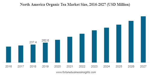 Geographically, North America procured USD 262.6 million in terms of revenue in 2019. It is set to lead the market throughout the forthcoming years on account of the rising awareness programs to educate people about the health benefits of organic tea.