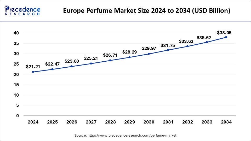 According to Precedence Research, the global perfume market size will grow from USD 60.73 billion in 2025 to nearly USD 101.47 billion by 2034, with an expected CAGR of 5.88% from 2025 to 2034. Europe accounted for the largest market share of 37% in 2024, while Asia-Pacific emerged as the fastest-growing market during the forecast period.
