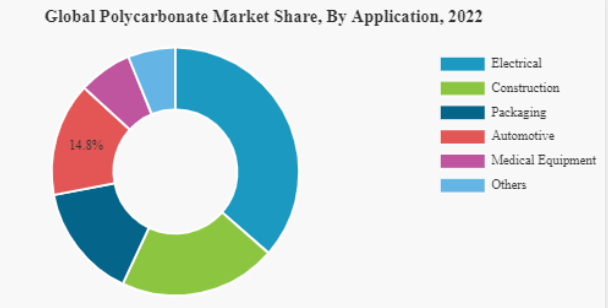 On the basis of grade, the market is divided into flame retardant grade, food grade, standard purpose grade, medical grade, and others. The standard purpose grade segment accounted for the largest market share in 2022. The polycarbonate belonging to the standard purpose grade is cost-effective. This factor is driving the segment growth.