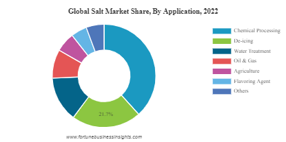 The global salt market covered major segments By Type (Rock Salt, Salt in Brine, Solar Salt, and Vacuum Pan Salt), By Source (Brine and Salt Mines), By Application (Chemical Processing, De-icing, Water Treatment, Oil & Gas, Agriculture, Flavoring Agent, and Others) and Regional Forecast, 2023-2030.