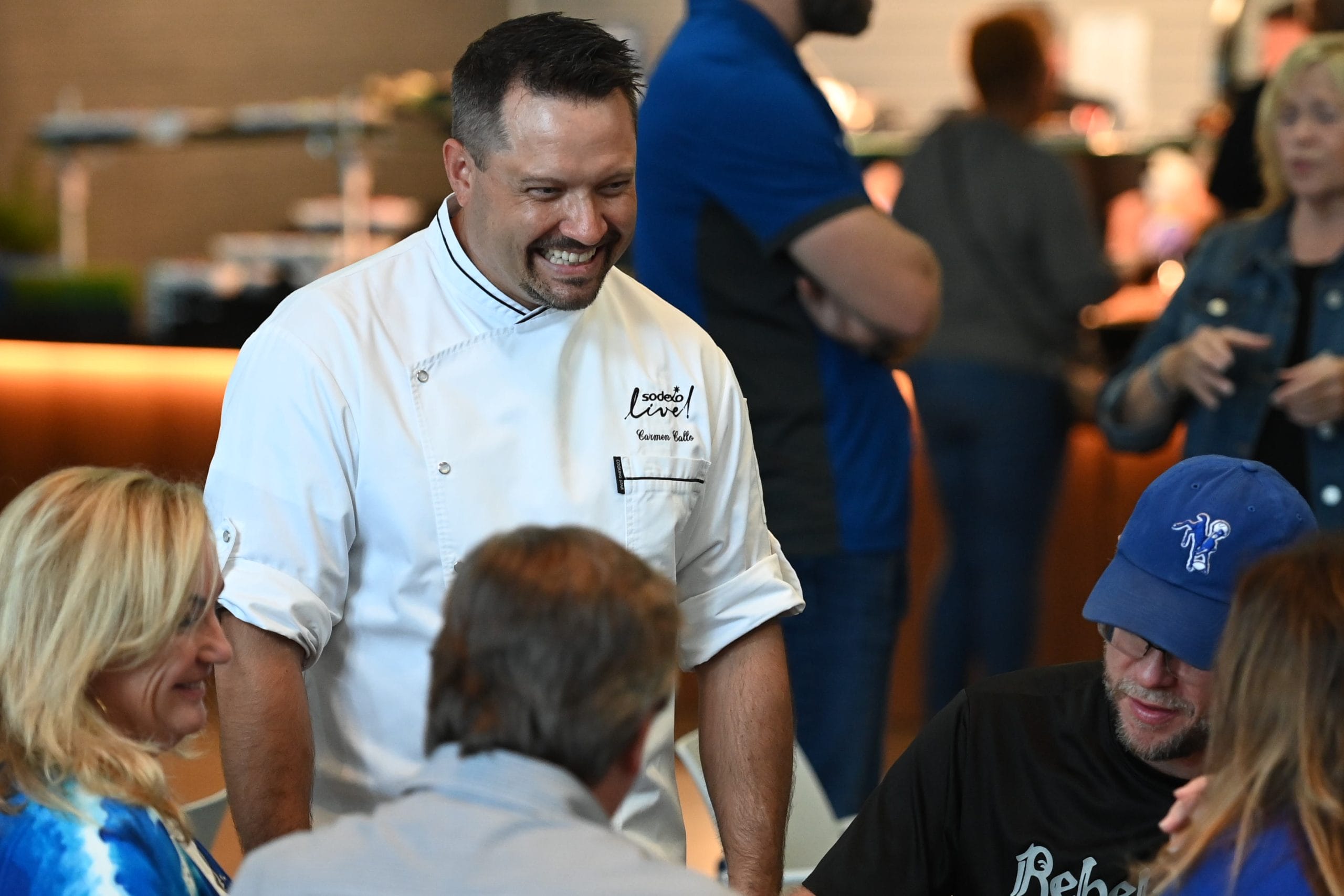 Sodexo Live!’s SVP Corporate Executive Chef Carmen Callo mingling with guests at Lucas Oil Stadium in Indianapolis, Indiana