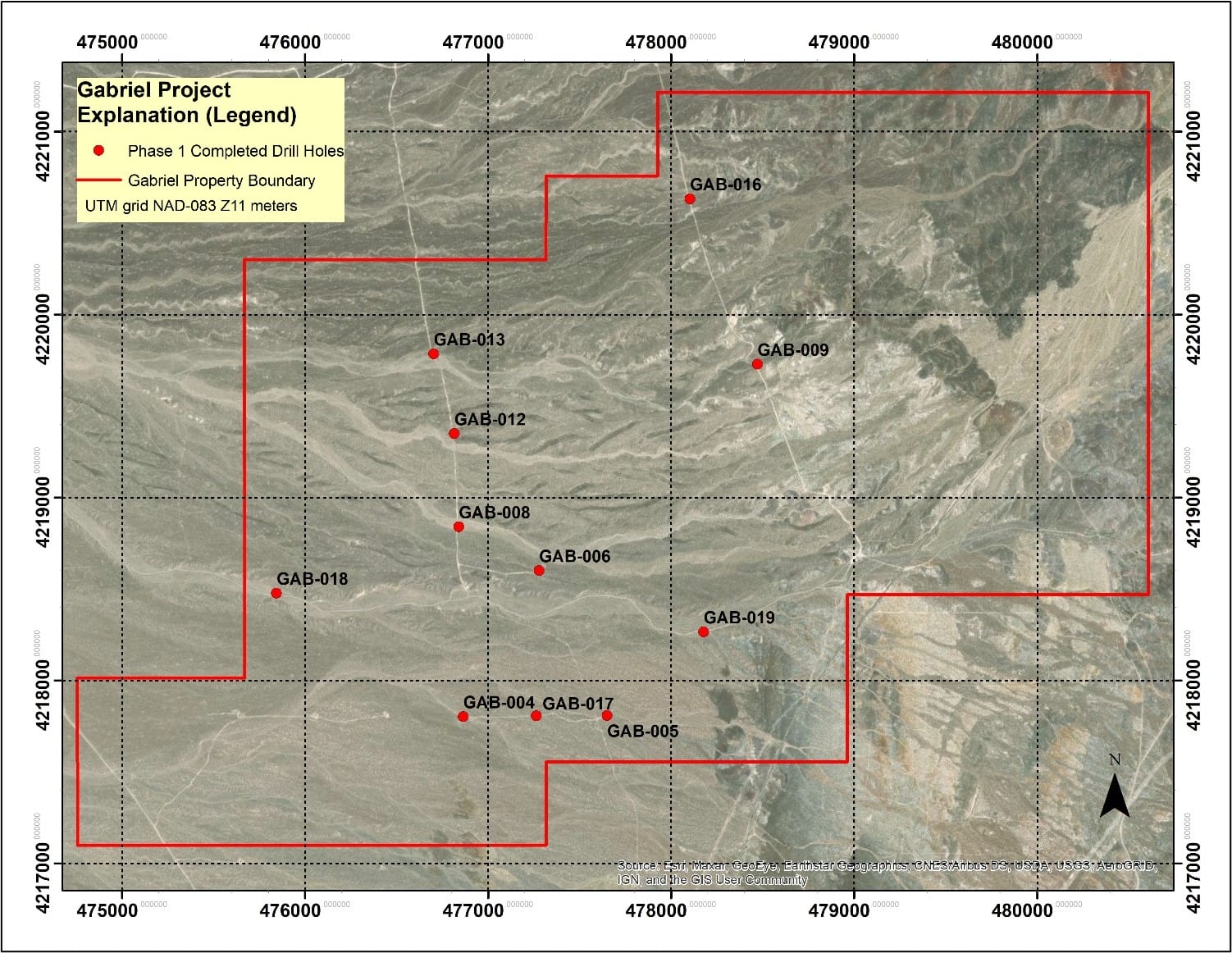 • Completion of Phase 1 drilling, 11 holes and 3939 feet (1200.6 meters) at Gabriel.