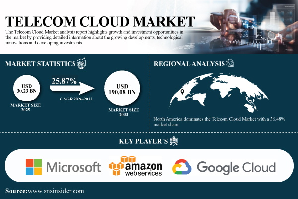 Telecom Cloud Market to Surpass USD 190.08 Billion by 2033, Expanding at 25.87% CAGR | SNS Insider