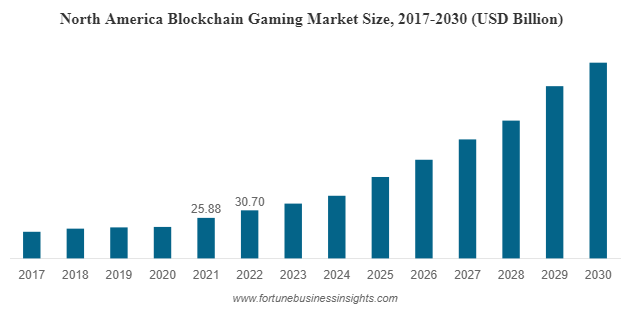 - Blockchain Gaming Market size in North America was USD 30.70 billion in 2022